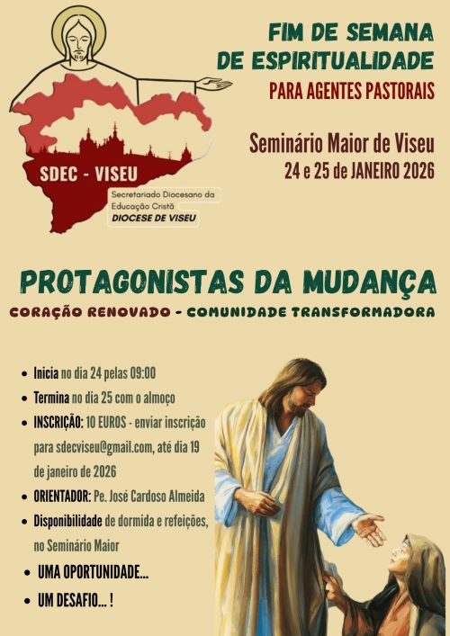 À semelhança dos anos anteriores, o Secretariado da Educação Cristã de Viseu (SDEC) promove um fim de semana de espiritualidade, nos dias 24 e 25 de janeiro, com um retiro destinado aos agentes pastorais: catequistas, professores, animadores litúrgicos, animadores juvenis, membros de movimentos, entre outros.