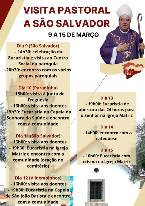 Entre os dias 9 e 15 de março, o Bispo de Viseu, D. António Luciano, vai fazer a Visita Pastoral à paróquia de São Salvador, Arciprestado de Viseu Urbano.